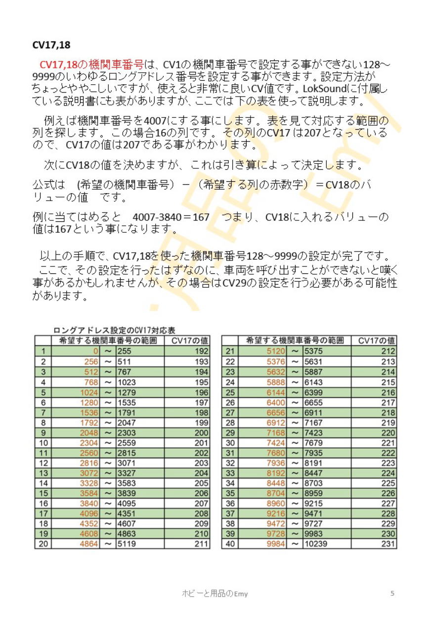 ESU LokSound5 の最低限は知っておいた方が良いCV値をまとめてみました。